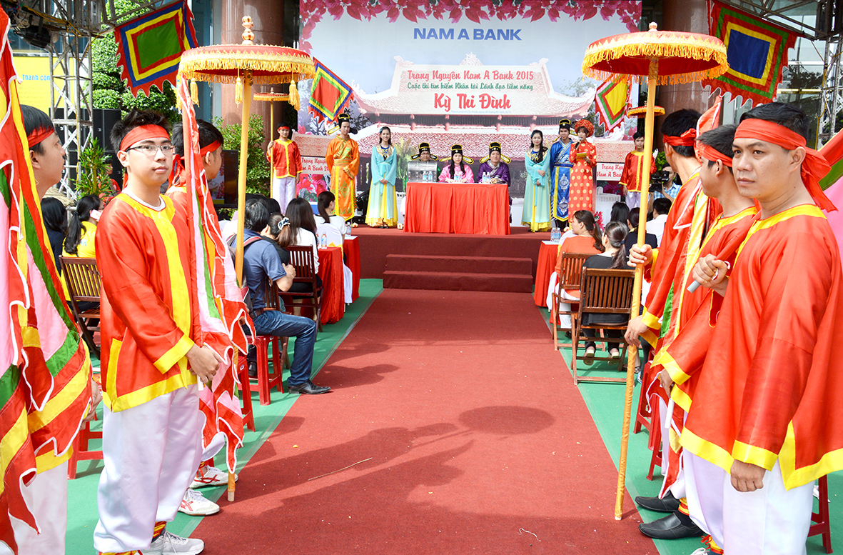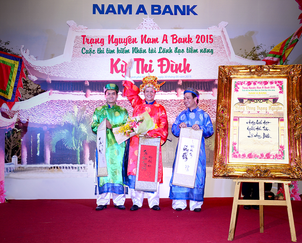 Ngày nay, ý nghĩa ấy vẫn còn duy trì, tiếp nối, Nam A Bank vinh dự được tái hiện lại Khoa cử này bắt đầu từ đầu tháng 4/2015 và trải qua 3 kỳ sàng lọc đầy thử thách: Thi Hương, Thi Hội, Thi Đình. Cuộc thi thu hút gần 600 thí sinh từ các CN/PGD trên toàn quốc. Sau 2 kỳ thi Hương và thi Hội, Nam A Bank đã tìm ra 14 gương mặt xuất sắc nhất để bước vào kỳ thi Đình với 2 vòng thi lý thuyết và thi xử lý tình huống vô cùng hấp dẫn. Bằng tài trí thông minh, xử lý tình huống nhạy bén và kiến thức chuyên môn sâu, sĩ tử Hoàng Quốc Đạt xứng đáng với chức vị Trạng nguyên lần này.