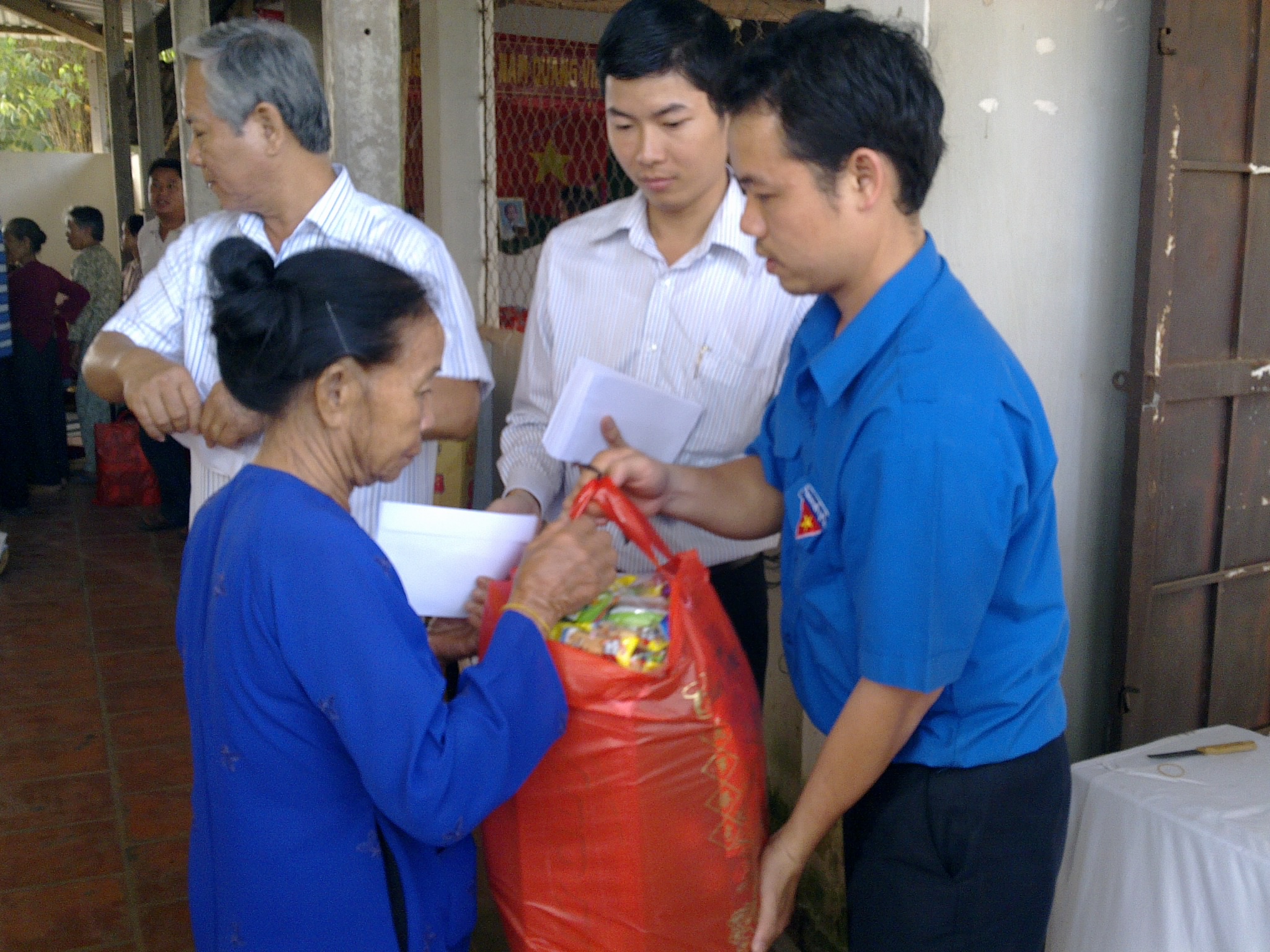 Ông Nguyễn Quang Thông -đại diện Đoàn thanh niên thăm và tặng quà Tết cho đồng bào nghèo