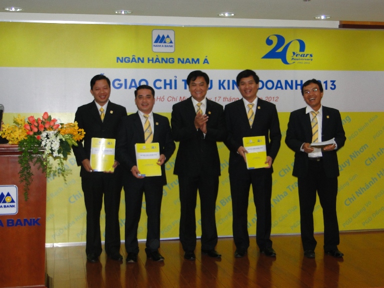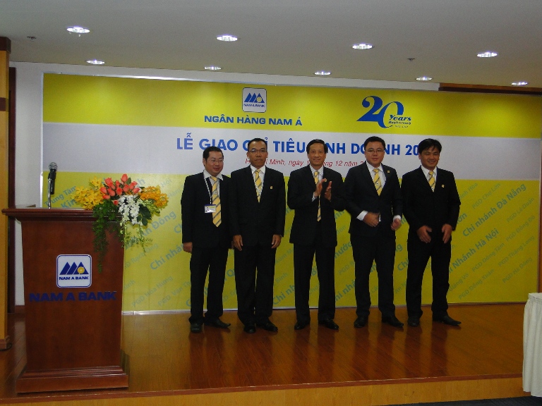Sáng ngày 17/12/2012 tại Hội sở Ngân hàng Nam Á (NAM A BANK) đã long trọng tổ chức Lễ Giao chỉ tiêu kinh doanh năm 2013 cho các đơn vị kinh doanh trên toàn hệ thống. Trong buổi lễ, Ban lãnh đạo các cấp của NAM A BANK đã cùng nhau đánh giá lại chặng đường năm 2012 với những mặt đạt được và những mặt còn hạn chế trong việc hoàn thành chỉ tiêu 2012. Từ đó định hướng cho chỉ tiêu 2013 cụ thể, rõ ràng hơn.