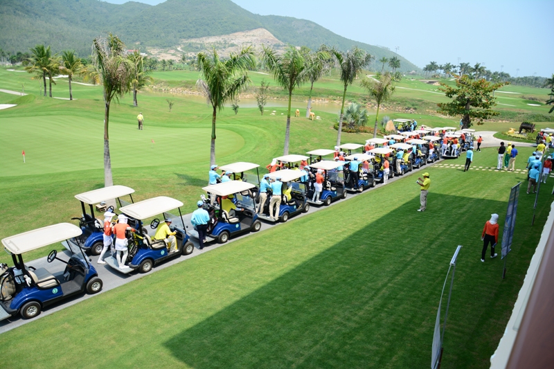 Các gôn thủ tập trung trên sân Golf trước giờ diễn ra giải Golf Nam A Bank Open Tournament