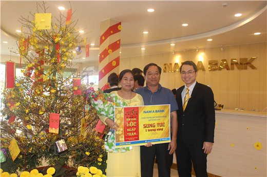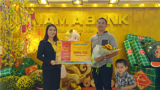 Sau hơn một tháng triển khai chương trình khuyến mãi “Tết rộn ràng, Lộc ngập tràn”, Nam A Bank đã tìm ra và trao thưởng cho 5 chủ nhân đầu tiên của giải “Sung Túc” với trị giá 1 lượng vàng SJC. Hàng nghìn giải Phú Qúy, Tài Lộc, An Khang, Sung Túc, Sum Vầy với trị giá lên đến 1.000.000 cũng đã được trao cho các khách hàng may mắn. Và vẫn còn rất nhiều giải thưởng có giá trị vô cùng hấp dẫn đang đón chờ đợi Quý khách hàng từ nay đến 13/04/2016.