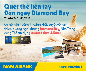 Nhằm tri ân khách hàng có doanh số chi tiêu cao bằng thẻ tín dụng quốc tế, Nam A Bank đã triển khai chương trình khuyến mãi “Quẹt thẻ liền tay đến ngay Diamond Bay” trên toàn hệ thống từ ngày 01/07/2015 đến ngày 31/12/2015 với các giải thưởng hấp dẫn: Giải nhất là 01 chuyến du lịch 03 ngày 02 đêm dành cho 02 người trị giá 18.000.000 VND gồm vé máy bay, resort 02 đêm và chi phí sinh hoạt tại Diamond Bay; 02 Giải nhì, mỗi giải 01 chuyến du lịch 03 ngày 02 đêm dành cho 02 người trị giá 13.000.000 VND gồm vé máy bay và resort 02 đêm tại Diamond Bay; 02 Giải ba, mỗi giải 01 chuyến du lịch 03 ngày 02 đêm dành cho 02 người trị giá 9.000.000 VND với resort 02 đêm tại Diamond Bay.