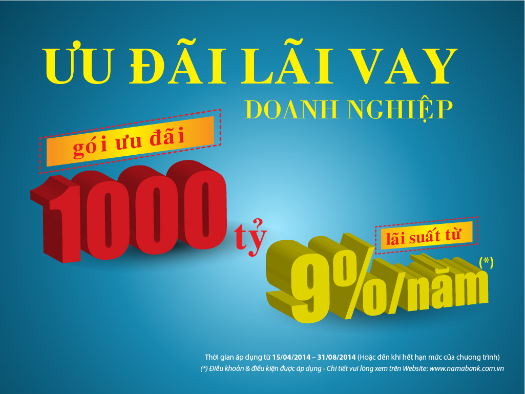 ưu đãi lãi vay doanh nghiệp” được triển khai từ 15/04 - 31/8/2014, đây