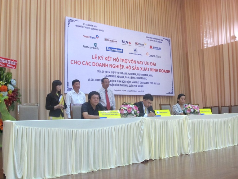 Đây là buổi lễ do Ngân hàng Nhà nước - chi nhánh TP HCM phối hợp với UBND Quận Bình Thạnh và Quận Phú Nhuận tổ chức nhằm hỗ trợ vốn cho các doanh nghiệp, hộ sản xuất kinh doanh trên địa bàn. Buổi Lễ ký kết đã thu hút được 9 ngân hàng thương mại trên địa bàn Quận Bình Thạnh và Quận Phú Nhuận tham gia.