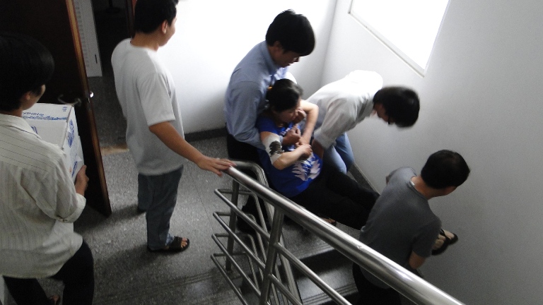 Tổ hướng dẫn cứu nạn cứu hộ di chuyển nạn nhân trong đám cháy đến điểm tập kết
