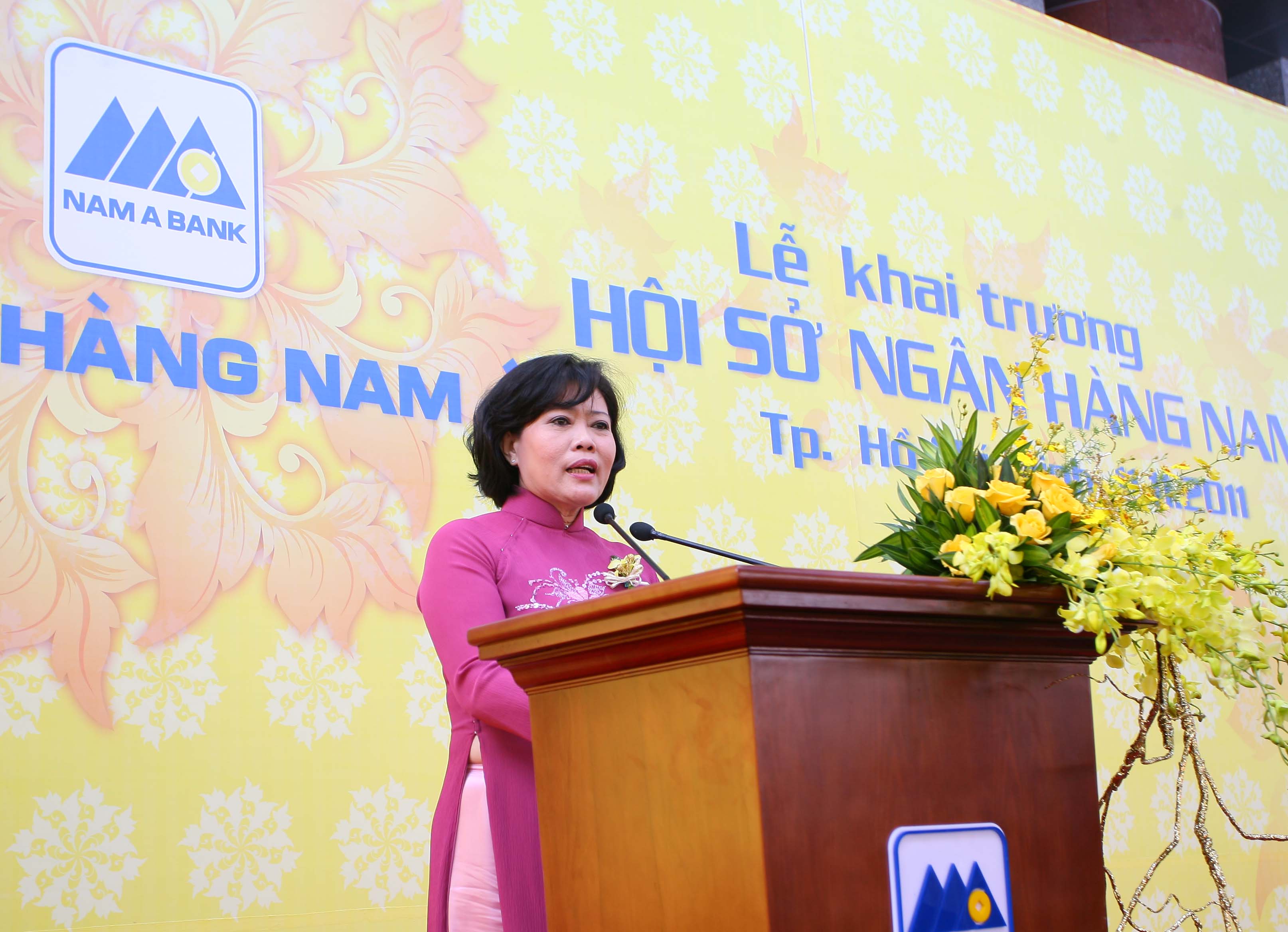 Bà Nguyễn Thị Hồng, Phó chủ tịch UBND TP trao bằng khen cho ngân hàng Nam Á
