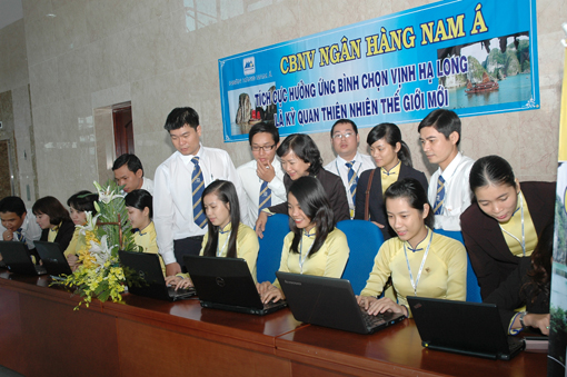 Mới đây, hưởng ứng tháng cao điểm (tháng 10/2011) bầu chọn cho Vịnh Hạ Long là một trong Bảy kỳ quan thiên nhiên mới của thế giới, toàn thể cán bộ nhân viên NAM A BANK đã tích cực tham gia bầu chọn và rất tự hào khi những lá phiếu của mình đã góp phần nào đưa Việt Nam có tên trong danh sách những quốc gia có kỳ quan thiên nhiên thế giới.