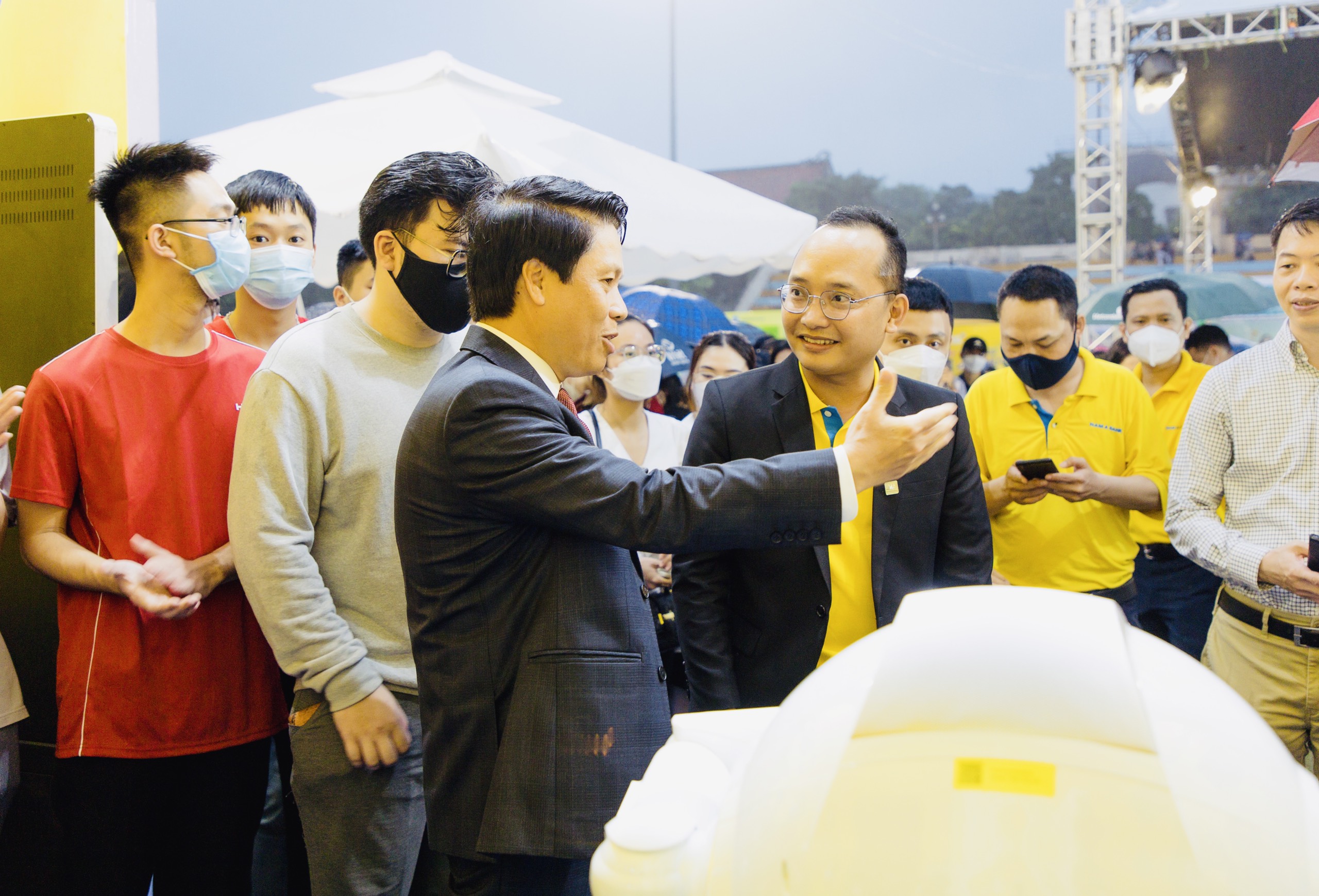 Ông Phạm Tiến Dũng - Phó Thống đốc Ngân hàng nhà nước Việt Nam tham quan và trải nghiệm gian hàng số của Nam A Bank.