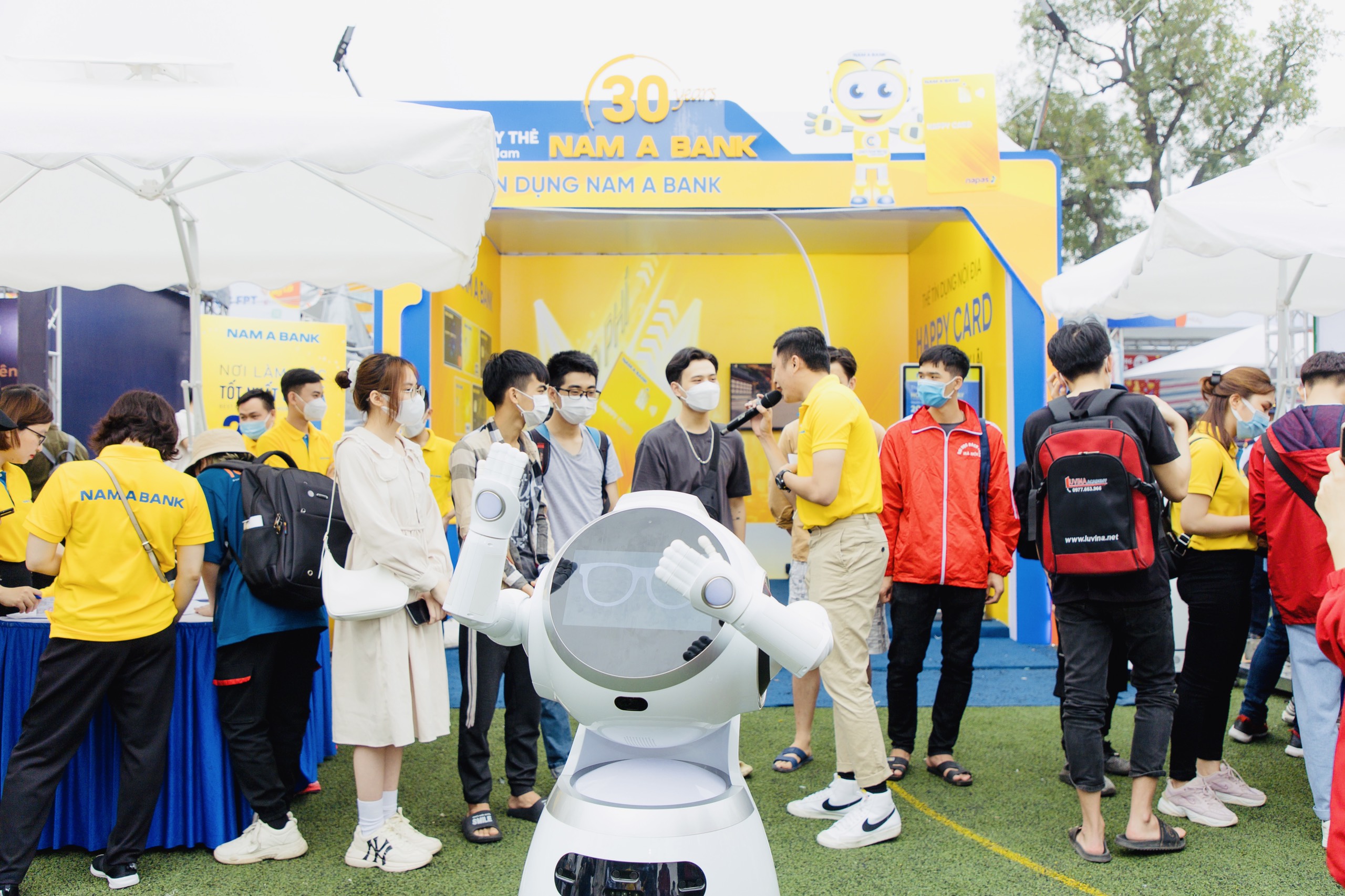 Là một trong những ngân hàng tiên phong trong chuyển đổi số, Nam A Bank luôn chú trọng đầu tư công nghệ để gia tăng trải nghiệm khách hàng trong thời đại 4.0. Tại đây, rất nhiều sinh viên hào hứng với màn trình diễn Robot OPBA đến từ ngân hàng.