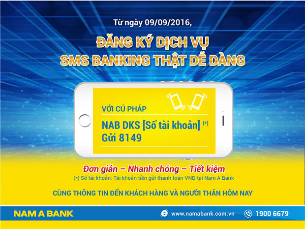 Nhiều ngân hàng đã ứng dụng và triển khai dịch vụ SMS Banking. Tại Nam A Bank, ngoài các tiện ích cơ bản như nhận tin nhắn thông báo thay đổi số dư tài khoản tức thì, tra cứu số dư, lịch sử giao dịch; dịch vụ SMS Banking của Nam A Bank còn cho phép khách hàng thực hiện các giao dịch tài chính như chuyển khoản trong hệ thống, thanh toán hóa đơn, nạp tiền điện thoại, mua mã thẻ điện thoại hoặc thẻ game.