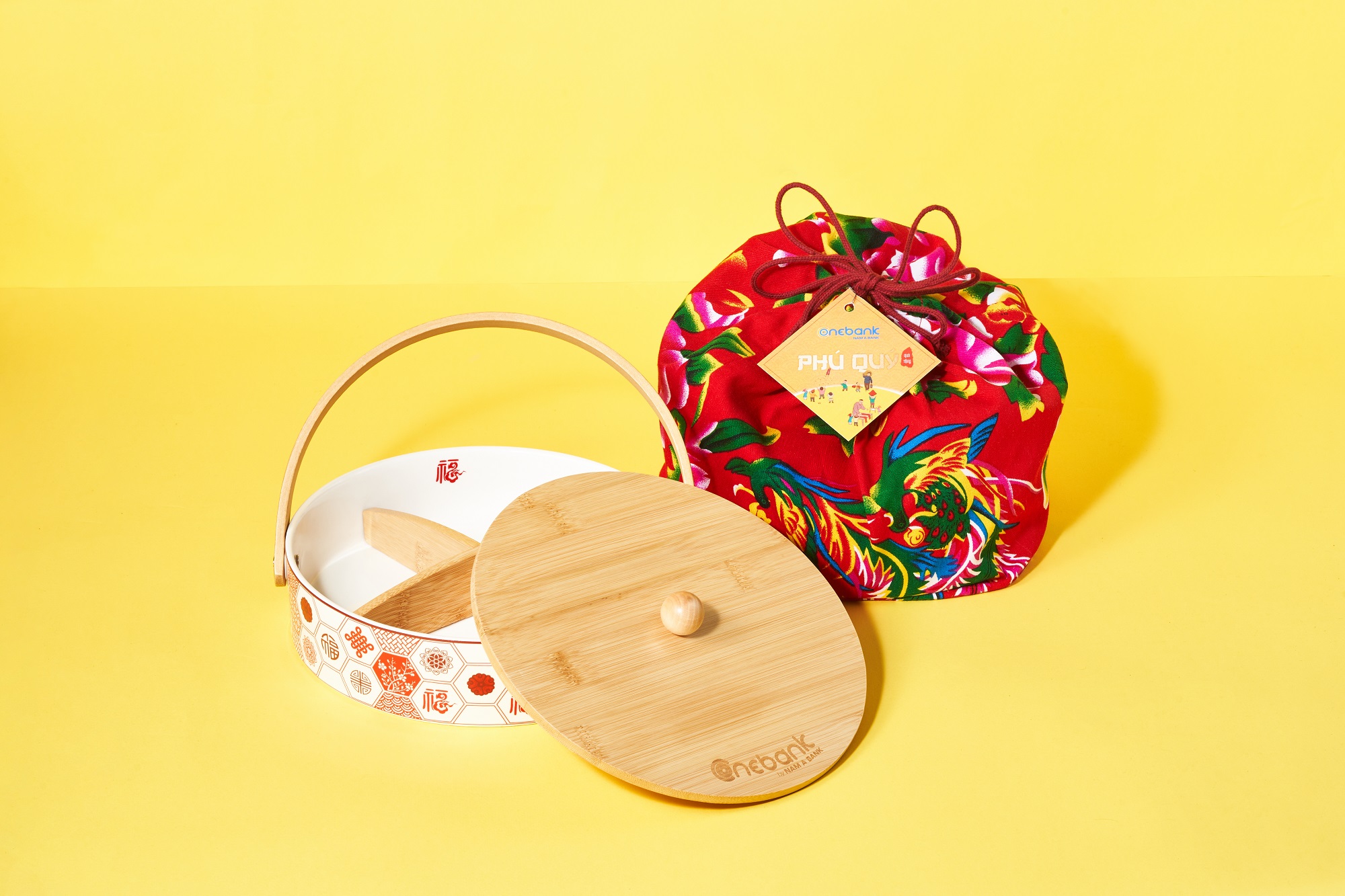 Bộ quà Phú Quý mang đậm nét đẹp Tết Việt với khay mứt hình tròn thể hiện sự vẹn tròn cho cả gia đình trong năm mới đến. Đặc biệt, túi vải họa tiết con công là sự lưu giữ nét đẹp văn hóa truyền thống Việt, nhắc nhớ người trẻ về những ký ức Tết xưa và ý nghĩa sum vầy ngày Tết. Bộ quà tặng là món quà hoàn hảo Nam A Bank dành tặng cho các khách hàng để sử dụng trong gia đình hoặc làm quà biếu cho ông bà, bố mẹ, người thân tam, tứ đại đồng đường.