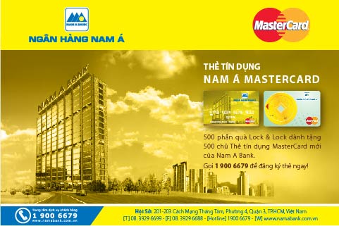 “CÓ THẺ CÓ QUÀ” dành riêng cho chủ Thẻ tín dụng Nam Á MasterCard. Với chương trình này, 500 khách hàng đăng ký và kích hoạt Thẻ sớm nhất sẽ nhận ngay quà tặng hấp dẫn – bình nước Lock & Lock thời trang.