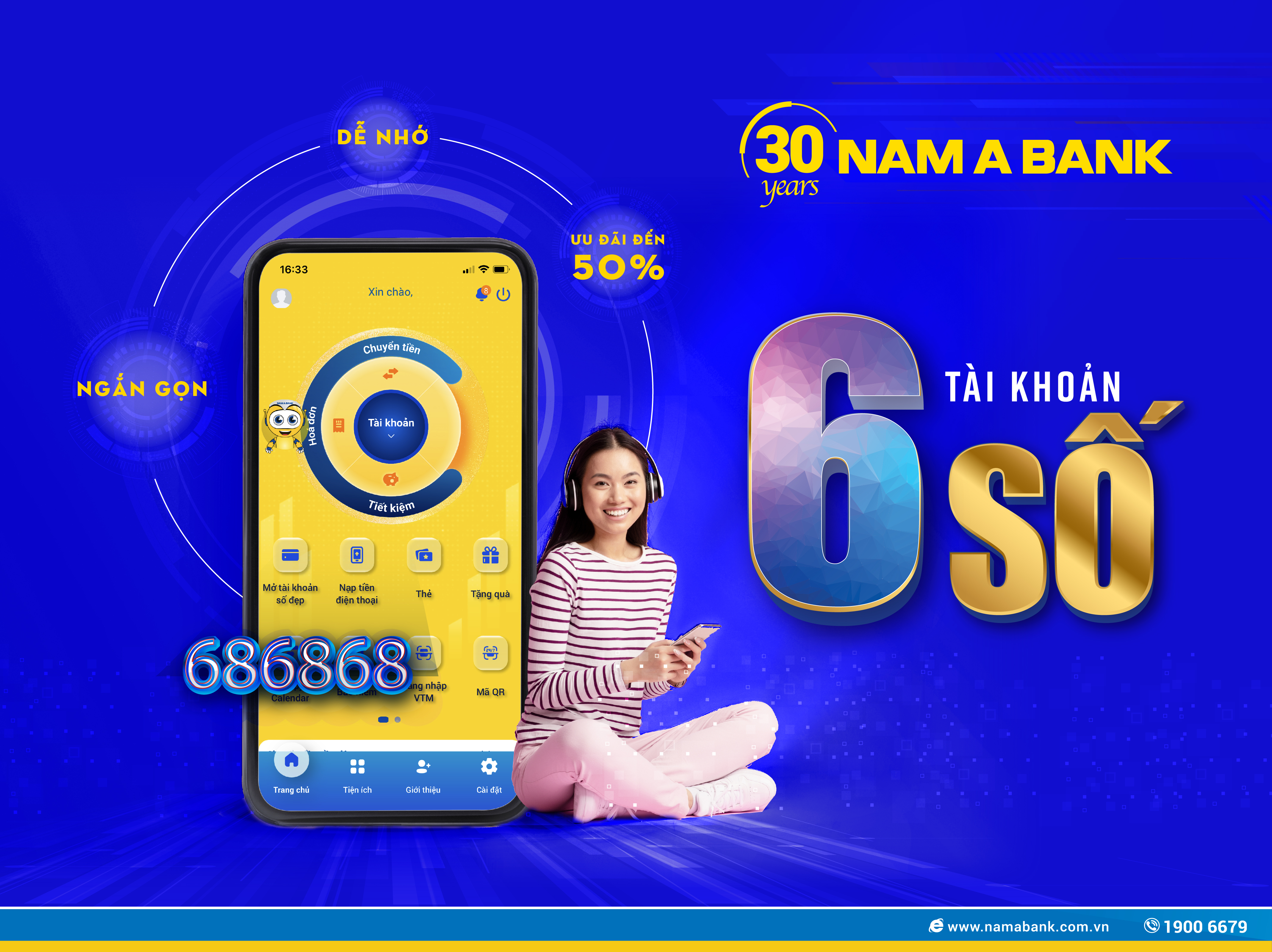 Từ ngày 8.8.2022, Nam A Bank chính thức triển khai dịch vụ tài khoản 6 số đẹp dành cho cả 2 nhóm khách hàng cá nhân và tổ chức, mang đến cho khách hàng nhiều lựa chọn sở hữu số đẹp theo sở thích, theo phong thủy, ngắn gọn và dễ nhớ, đặc biệt ưu đãi cực hấp dẫn đến 50%.