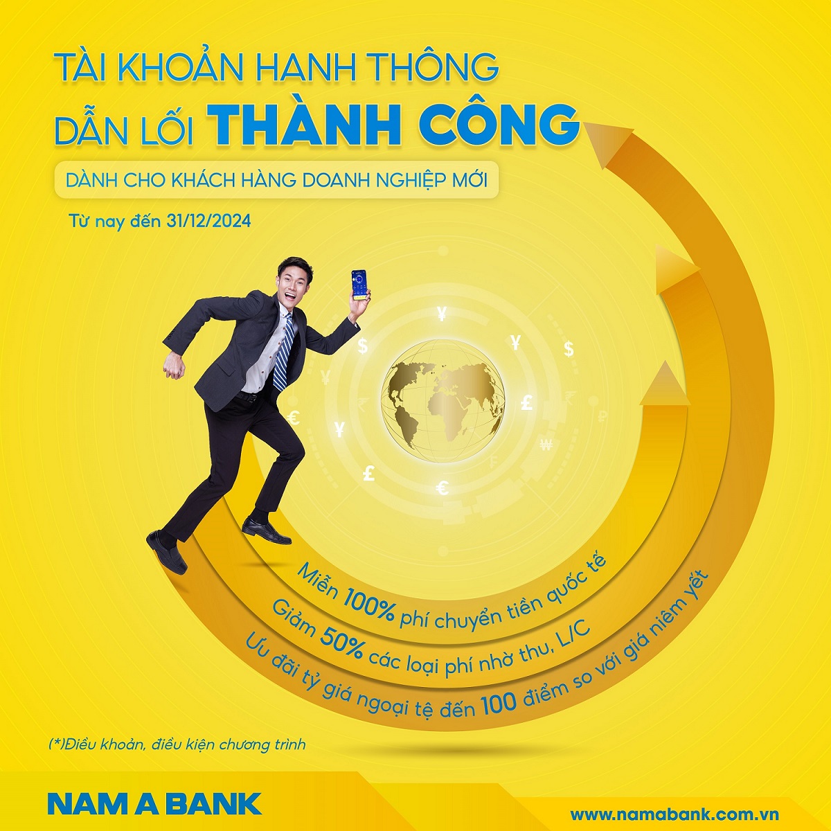 Nam A Bank triển khai chương trình “TÀI KHOẢN HANH THÔNG – DẪN LỐI THÀNH CÔNG” với nhiều ưu đãi hấp dẫn, vượt trội về thanh toán quốc tế dành cho khách hàng doanh nghiệp.