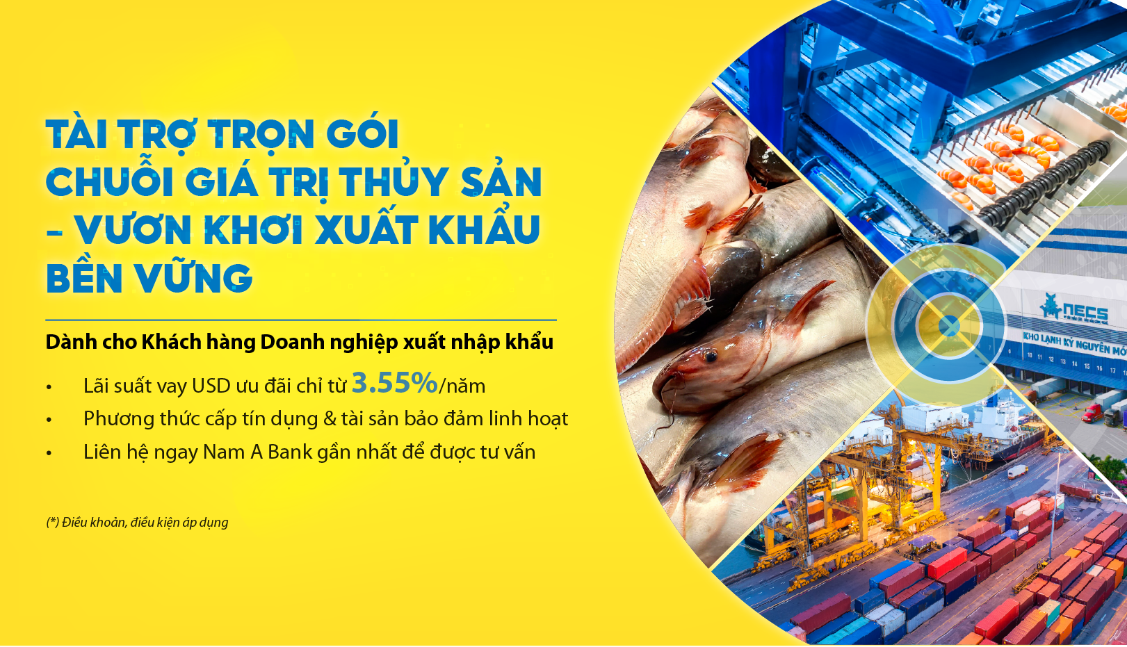 Nam A Bank trân trọng giới thiệu đến Quý Doanh nghiệp về sản phẩm “TÀI TRỢ TRỌN GÓI CHUỖI GIÁ TRỊ THỦY SẢN – VƯƠN KHƠI XUẤT KHẨU BỀN VỮNG”