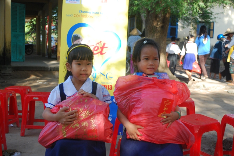 Tại tỉnh Trà Vinh chúng tôi gặp gỡ các em học sinh nghèo vượt khó học giỏi, các em đến nhận quà Tết trong bộ đồng phục tươm tất gọn gàng, vẻ mặt vui mừng khi nhận quà từ các cô chú của các em khiến cả đoàn từ thiện cảm thấy ấm lòng hơn.