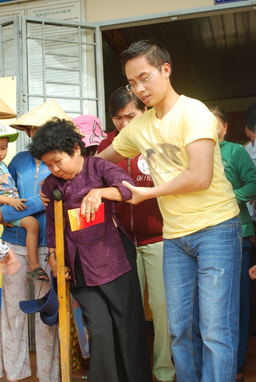 Tại Xã Thạnh Phú Tỉnh Cà Mau chúng tôi gặp anh Nguyễn Thanh Sơn, 43 tuổi, tàn tật 2 chân, mọi sinh hoạt của anh đều trên xe lăn, anh chia sẻ: hồi sau chiến tranh ba mẹ sinh ra tôi đã bị nhiễm chất độc màu da cam, sinh sống và lớn lên trong trung tâm nuôi dưỡng trẻ tàn tật thì gặp được bà xã, bà xã cũng như tôi, do đồng cảnh ngộ nên chúng tôi đến với nhau, đến nay cũng có 1 em bé 5 tuổi, vợ chồng ngày ngày ngồi xe lăn bán vé số kiếm tiền trang trải cuộc sống. Những tàn dư của chiến tranh như vẫn còn đọng lại đâu đó mỗi con người, thấy anh đến nhận quà Tết mà chúng tôi không khỏi chạnh lòng, người dân đến nhận quà đông quá nên xe lăn của anh không thể vào được hội trường, các anh trong đoàn từ thiện phải bế anh lên đưa anh vô nhận.