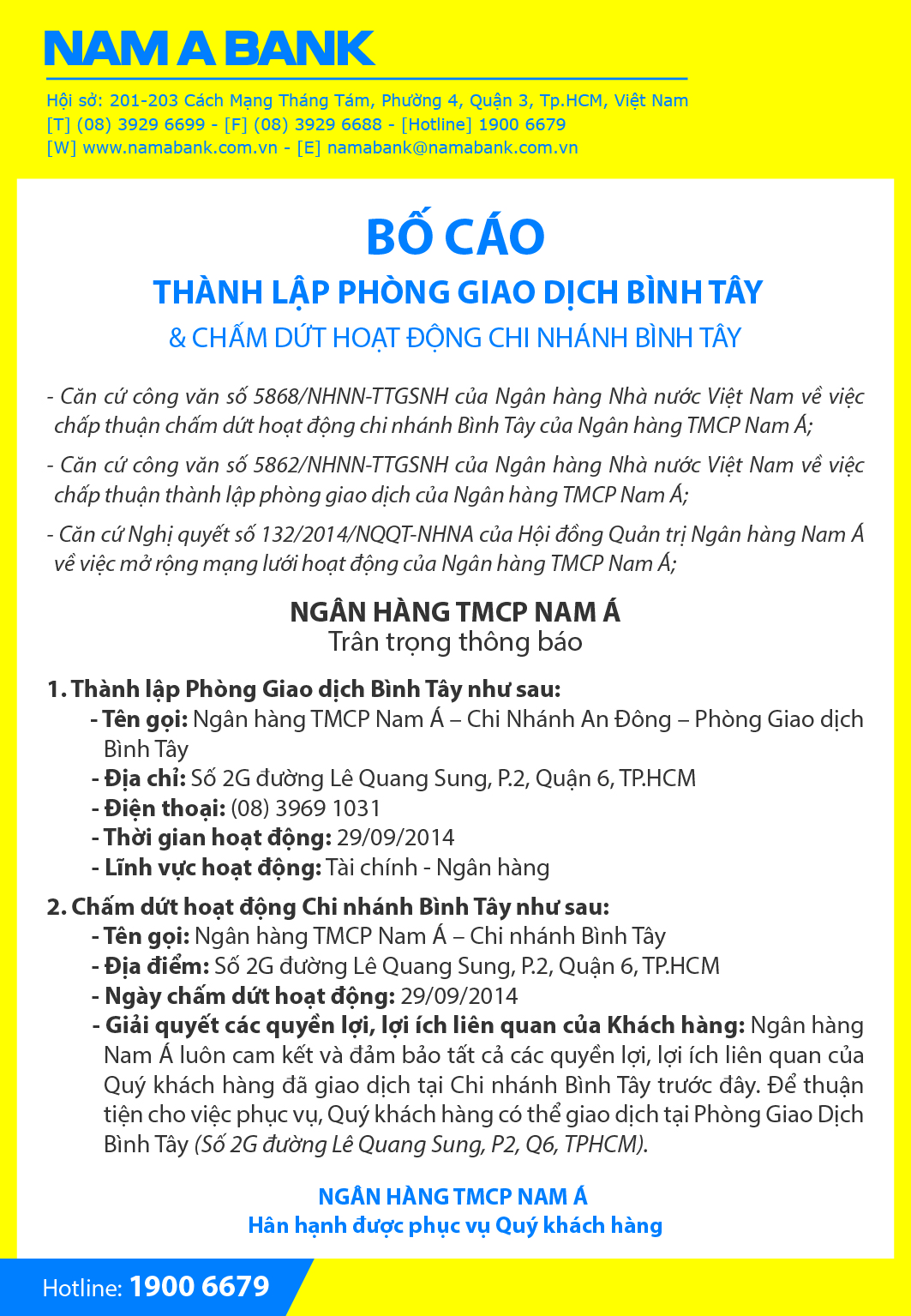 Thành lập PGD Bình Tây & Chấm dứt hoạt động CN Bình Tây
