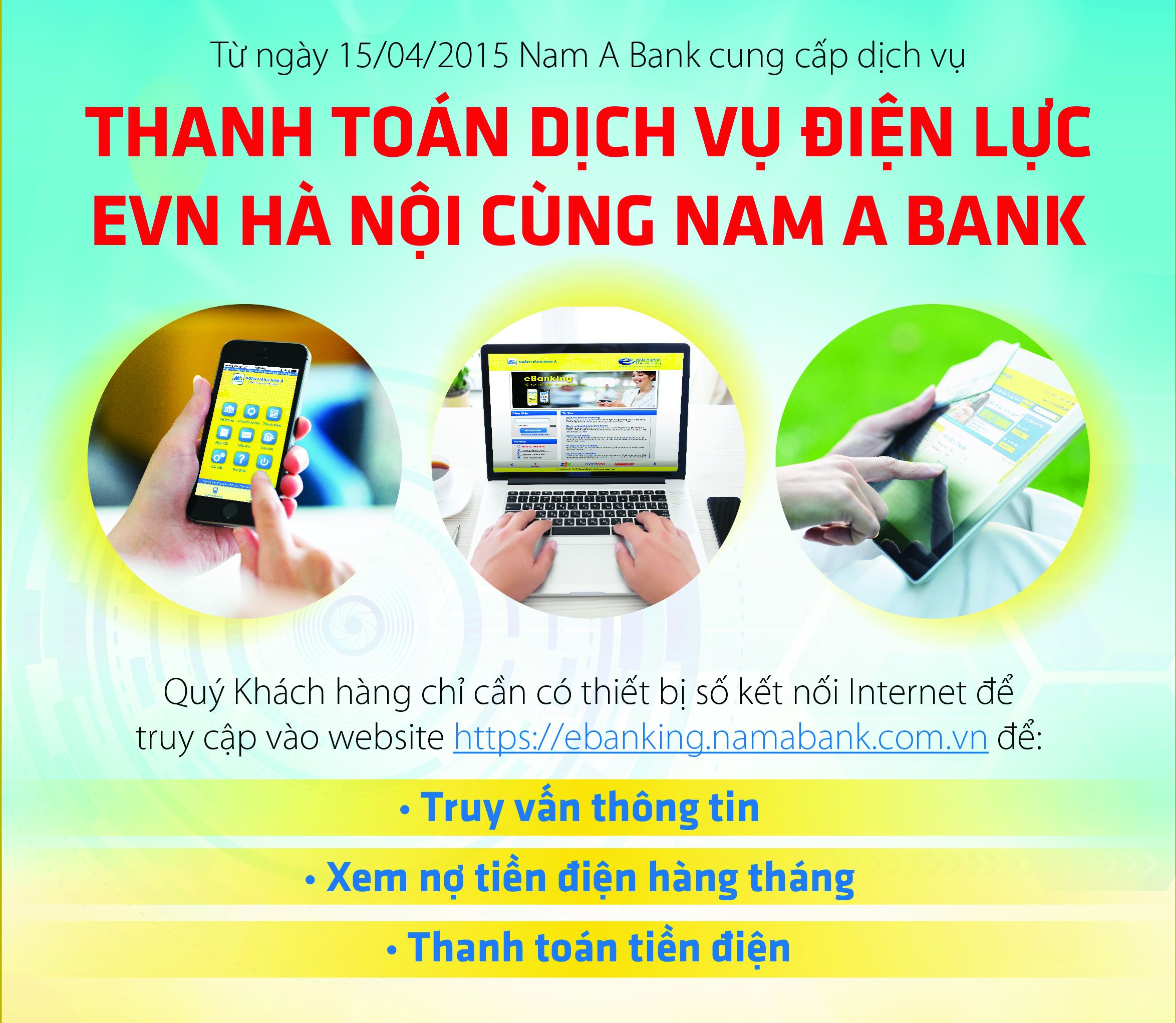 Từ ngày 15/04/2015 Nam A Bank và Công ty cổ phần Điện lực Hà Nội chính thức hợp tác mở ra một hướng thanh toán mới, thêm tiện ích và sự lựa chọn nhà cung cấp dịch vụ cho khách hàng. Theo đó, khách hàng của điện lực EVN nói chung và điện lực Hà Nội nói riêng có thể sử dụng các thiết bị số có kết nối Internet như máy tính, máy tính bảng, điện thoại di động để truy cập vào webstite