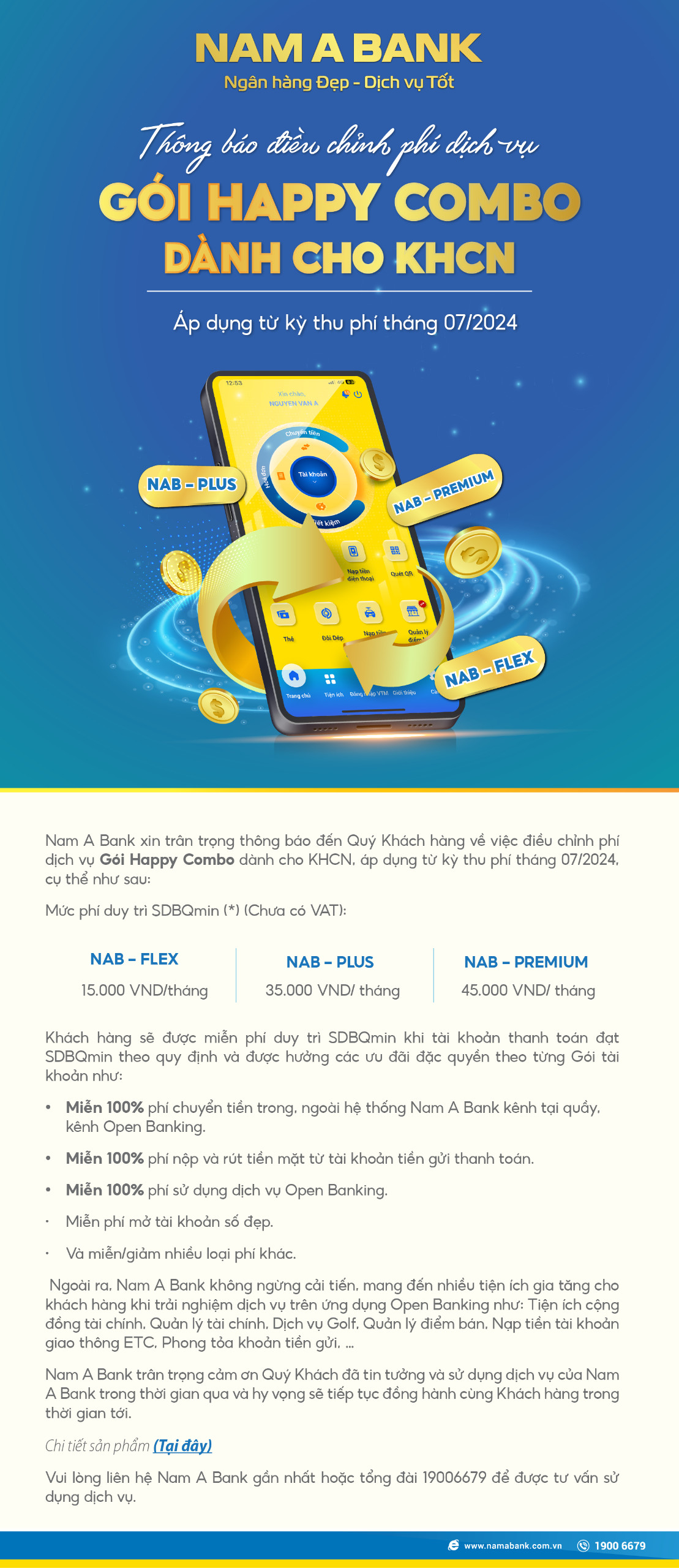 Thông báo điều chỉnh mức phí dịch vụ của gói Happy Combo