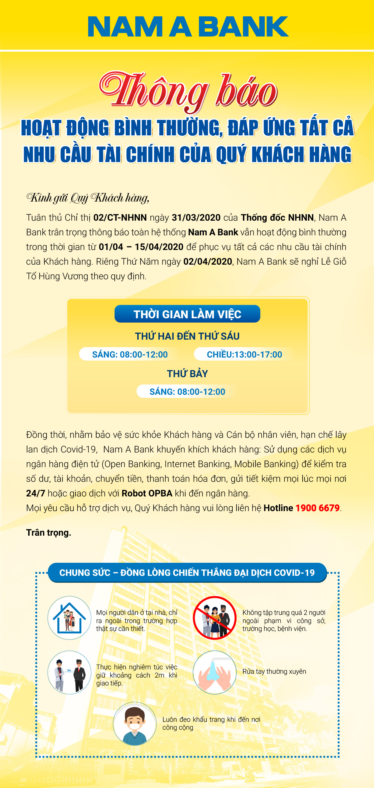 Thông báo Hoạt động bình thường, Đáp ứng tất cả nhu cầu tài chính của Quý khách hàng