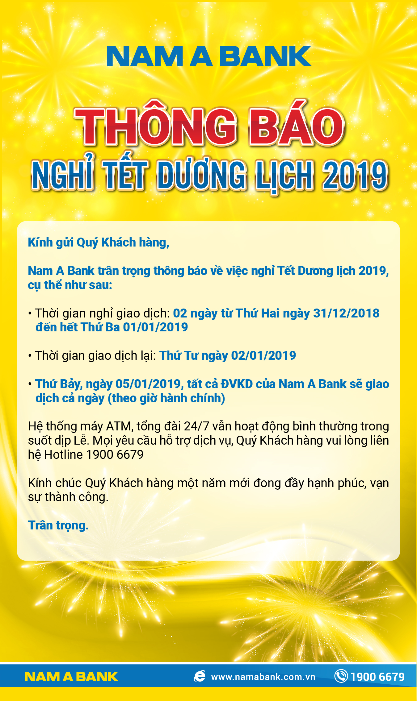 THÔNG BÁO NGHỈ TẾT DƯƠNG LỊCH 2019