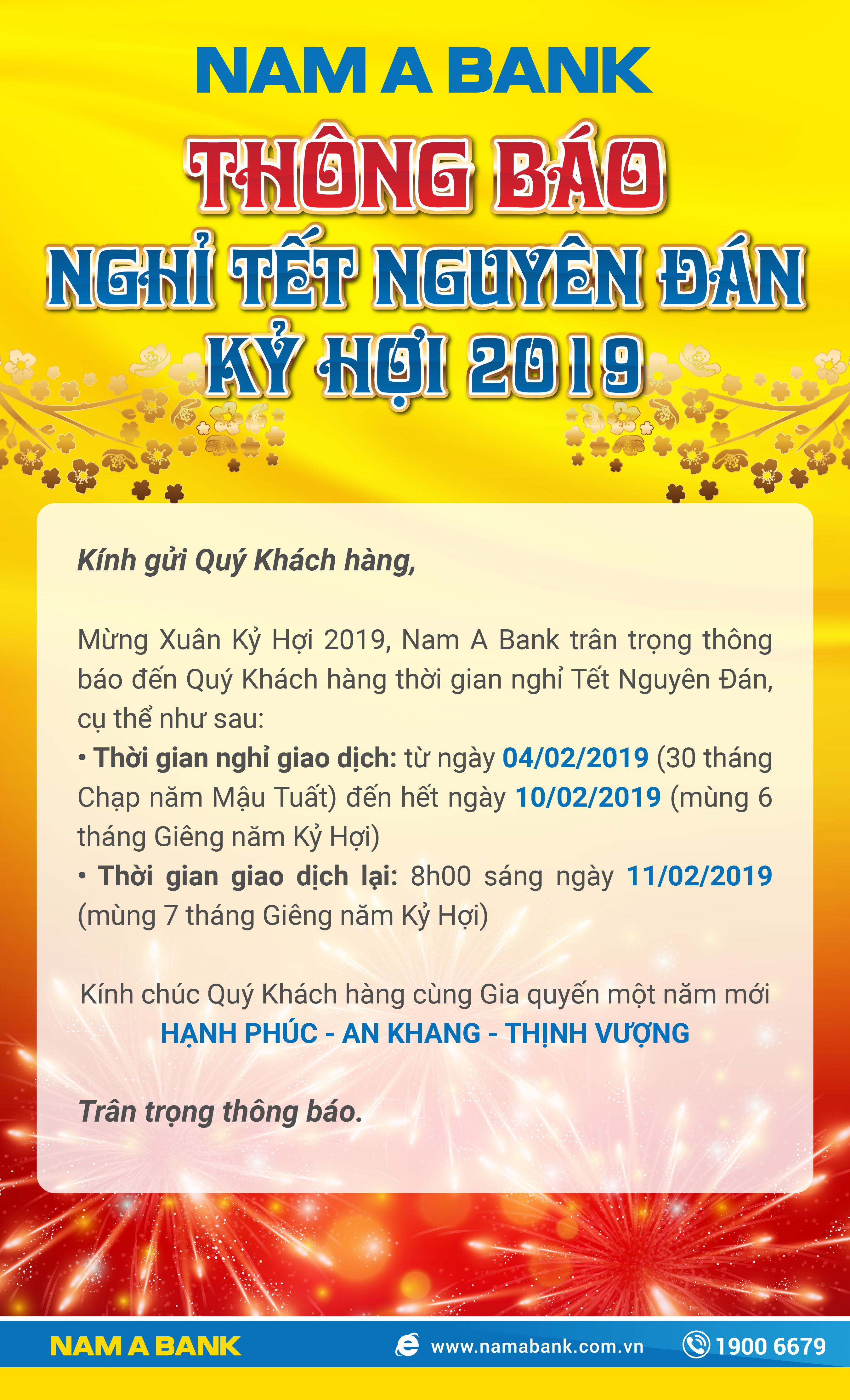 THÔNG BÁO NGHỈ TẾT NGUYÊN ĐÁN KỶ HỢI 2019
