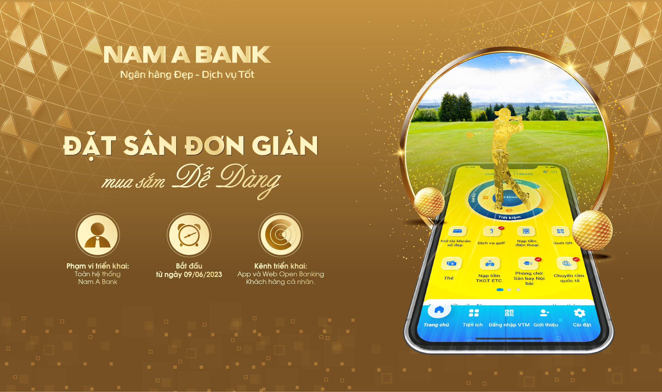 Bắt đầu từ ngày 09/06/2023, Nam A Bank chính thức ra mắt tính năng đặt sân và mua sắm dịch vụ Golf VGS Booking ngay tại hệ sinh thái Open Banking.