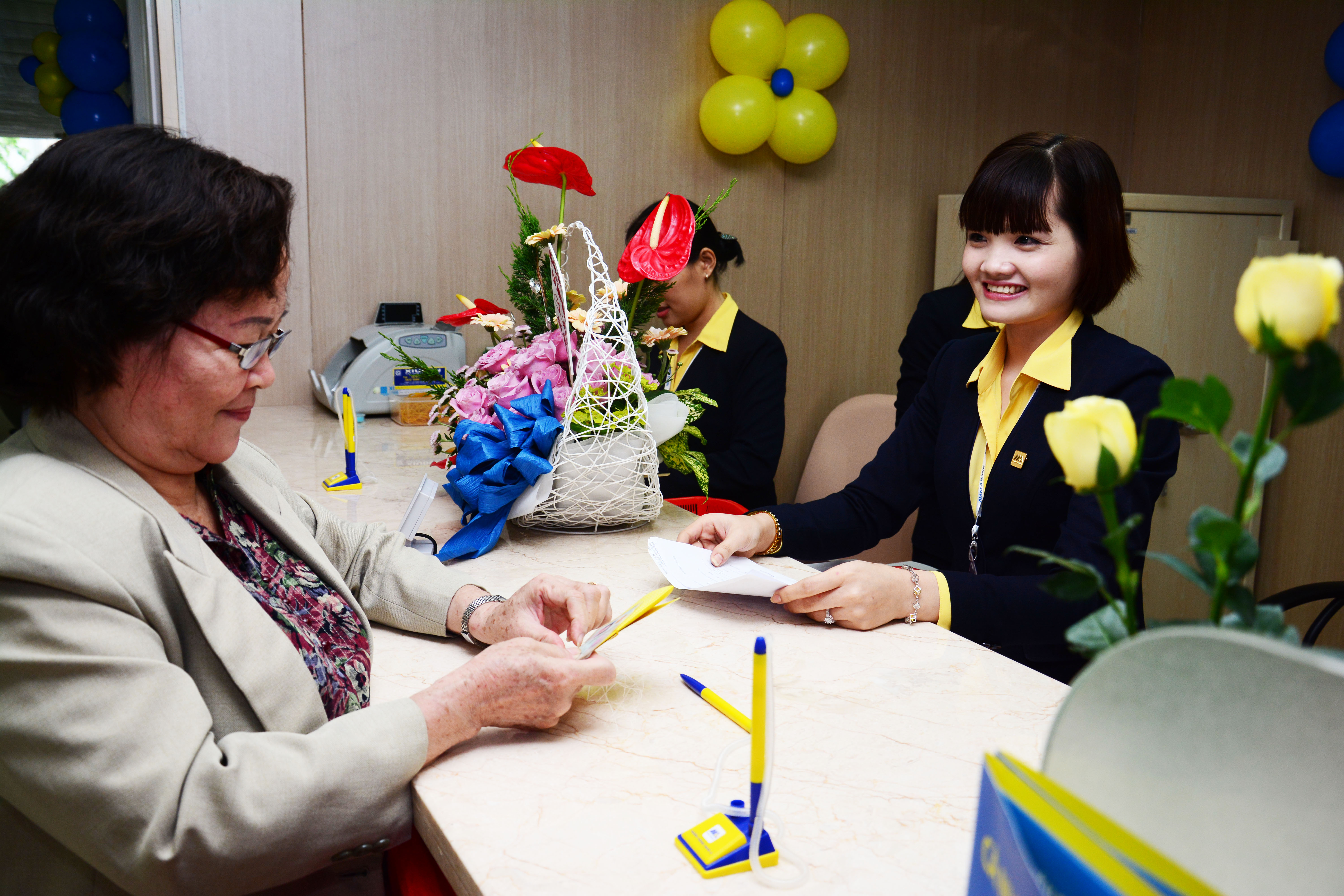 Khách hàng đang giao dịch tiền gửi tại trụ sở mới Nam A Bank Rạch Ông