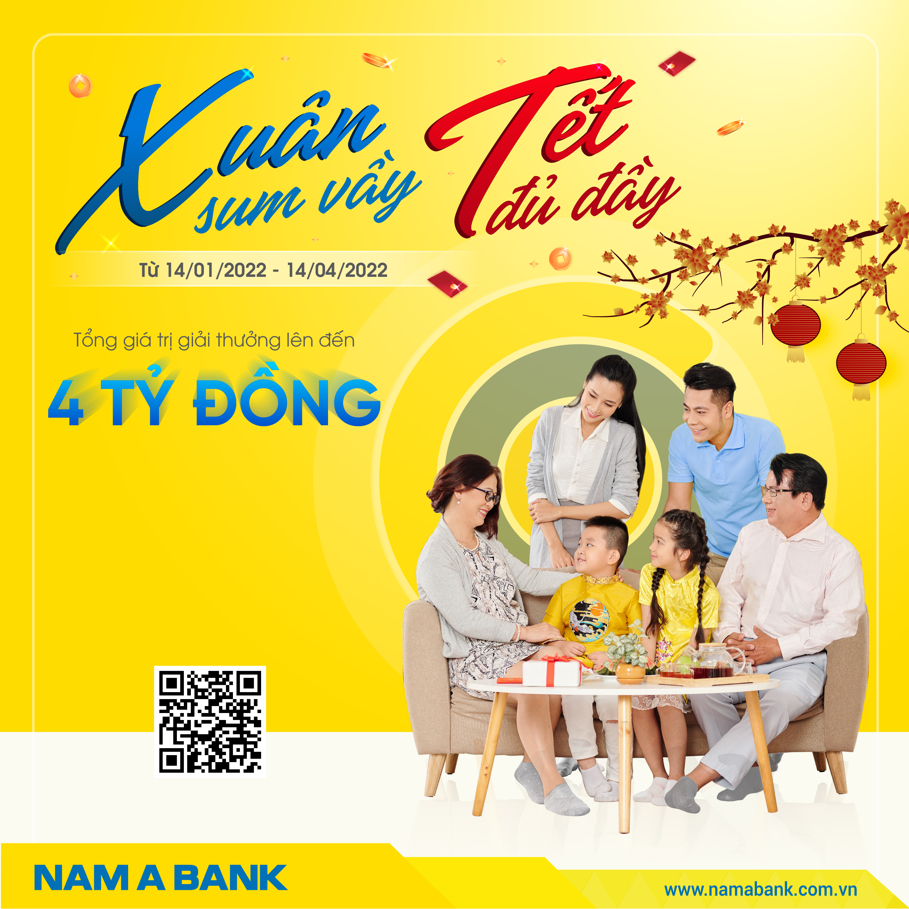 Nhằm tri ân sự đồng hành của Quý khách hàng trong thời gian vừa qua, nhân dịp Tết năm 2022, Nam A Bank triển khai chương trình khuyến mại (CTKM) XUÂN SUM VẦY – TẾT ĐỦ ĐẦY với hàng ngàn quà tặng hấp dẫn. Tổng giá trị giải thưởng lên đến 4 tỷ VNĐ.